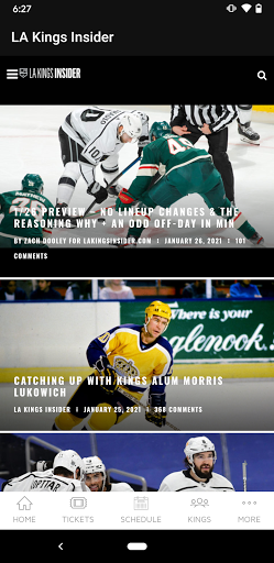 Download the new LA Kings App for the 2021 NHL Season! The central place for all your news, podcasts, scores, stats, exclusive content and videos, ticketing and access to game night Kings Care Foundation auctions. Plus, free to play games, and listen to every game live!