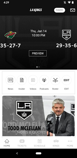 - App Url: https://play.google.com/store/apps/details?id=com.yinzcam.nhl.kings