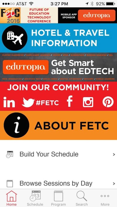 • Home: Stay informed about hot issues, event program changes, your upcoming sessions and organizer messages.