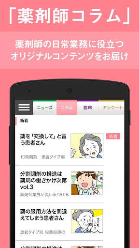 ・薬剤師限定コラム。「患者タイプ別 服薬指導のツボ」「薬剤師業界が変わる!調剤報酬改定」など薬剤師の日常業務やスキルアップに役立つコンテンツを配信しています。