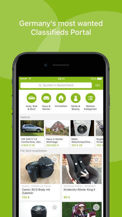 Perfect for searching and posting free classified ads in your neighborhood. No matter if it's a used car, a flat for rent, second-hand furniture, a new job, or stuff for the kids. With the eBay Kleinanzeigen app, you can find over 33 million ads in more than 280 categories - for free. Install the free app now and get started!