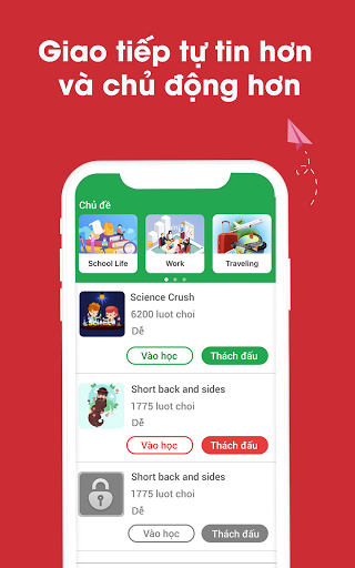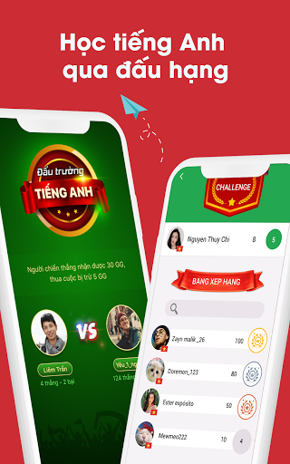 Học tiếng Anh qua trò chơi: Việc học tiếng Anh không còn nhàm chán với tính năng luyện phát âm qua trò chơi và thi đấu. Tham gia vào đấu trường tiếng Anh để kiểm tra khả năng phát âm của bản thân so với những đối thủ khác, đồng thời có cơ hội kết bạn với hàng nghìn người dùng khác trên khắp thế giới