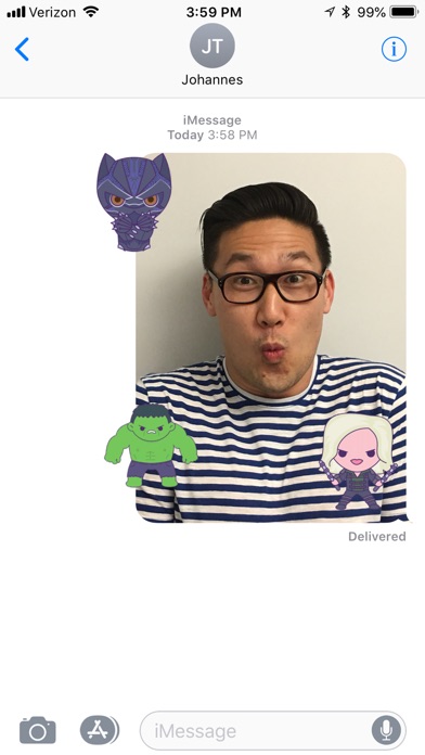 Make your iMessages more action-packed than ever before with this pack of 21 super stickers. Animated stickers including Captain America, Iron Man, Black Widow and more are ready to make your iMessages infinitely awesome!