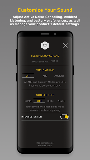 Adjust Active Noise-Cancelling, Ambient Listening, and battery preferences, as well as manage your M&D Bluetooth product's default settings.