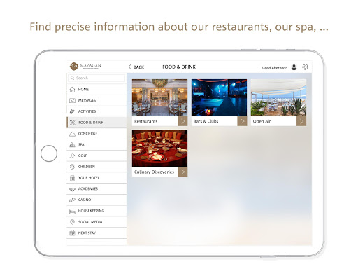 - Make the most of the hotel. Many of our services (restaurants, concierge, etc.) are available in the application and orders can be made in-app.
