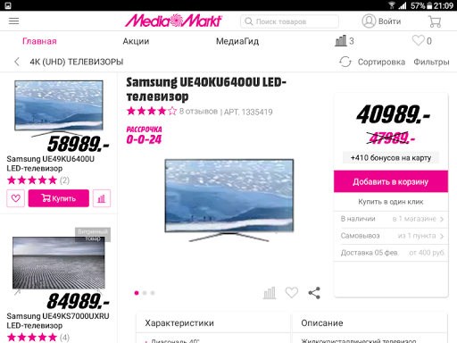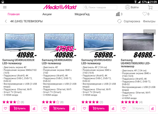 Скачайте приложение MediaMarkt и делайте покупки быстро и легко, где бы Вы ни находились! С приложением Вы получите доступ к множеству полезных услуг: