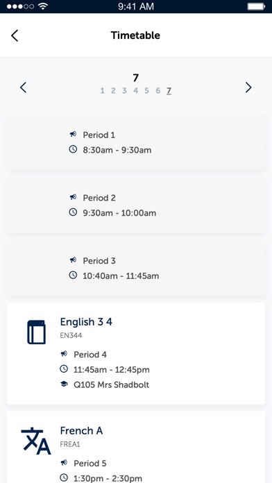 Parents, students and staff can see a copy of their 10 day timetable with an easy to read view of the current day’s timetable. By clicking on the class, students and staff will be able to access the class’ Schoolbox page.