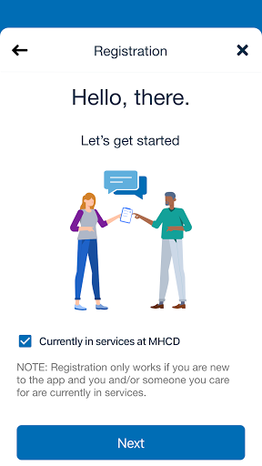 Quickly register your account in the app with the Self-Registration feature or a Registration Code from you MHCD care team.