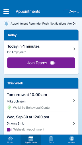 View your in-person and Telehealth appointment details including; date, time, appointment type, provider, and location. Cancel an upcoming appointment from the app.