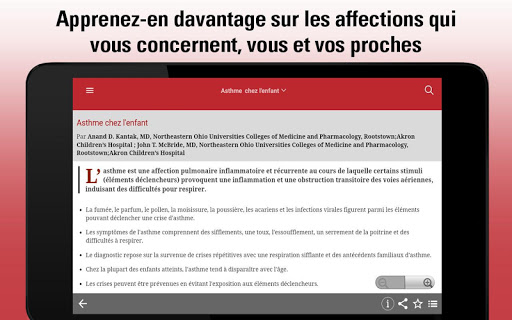 • Des informations médicales et sur la santé rédigées et mises à jour régulièrement par plus de 350 experts médicaux