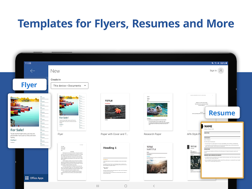 To create or edit documents, sign in with a free Microsoft account on devices with a screen size smaller than 10.1 inches.