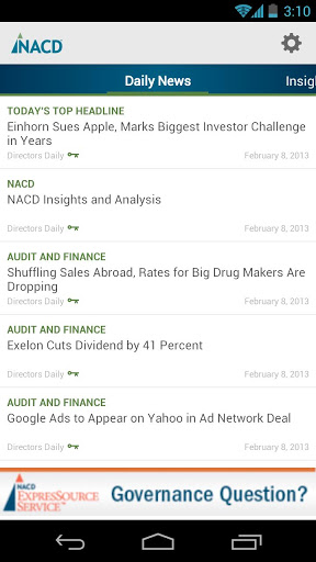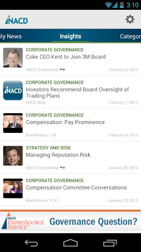 NACD Mobile delivers NACD’s proprietary news, research, and resources on boardroom insights and corporate governance trends with*: