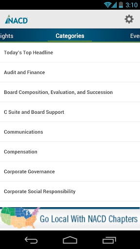 Instant boardroom intelligence for corporate directors. NACD Mobile provides corporate directors just-in-time access to news alerts and insights on current and emerging issues that shape exemplary board leadership.