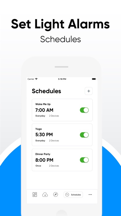 The Nanoleaf App supports voice control through Siri, Google Assistant, and Amazon Alexa. You can use the Nanoleaf App to turn your smart lighting on and off, control brightness, group lights by home and by room, create and use Scenes, and control all of the lights in a room through HomeKit. The Schedules feature of the app enables you to automate your home’s lighting—turn the lights off at night, wake up to light in the morning, or remind yourself to exercise… just a few of the nearly limitless ways that smart lighting can support your smarter life.