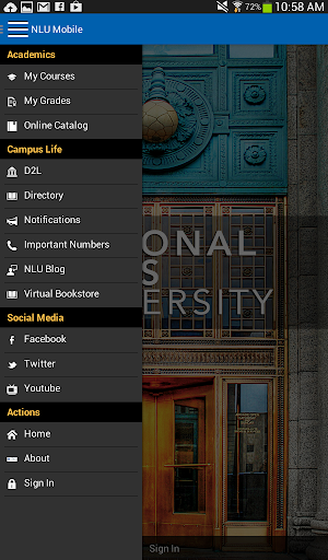 NLU Mobile helps you stay connected to important campus resources. From checking your courses and grades, to using D2L, to finding important numbers and more — this app brings it all to your fingertips anytime, anywhere.