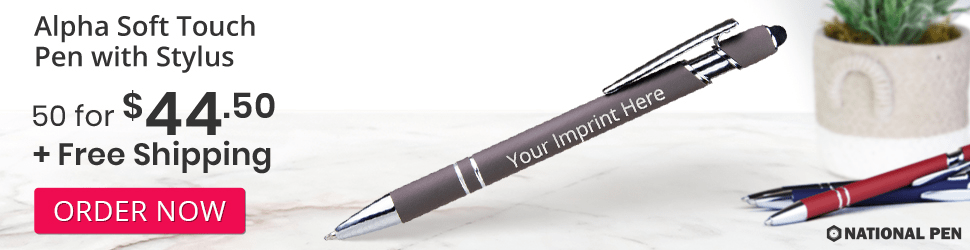 National Pen offers high quality personalized products at factory-direct pricing. In business over 60 years, we manufacture and assemble many of our promotional products in the USA. Advertise your business by imprinting your company name or logo on personalized pens, key chains, note pads, magnets, calendars, mugs, tote bags & more. Personalized promotional products are perfect for trade show giveaways, customer appreciation, corporate events, and marketing your brand.
