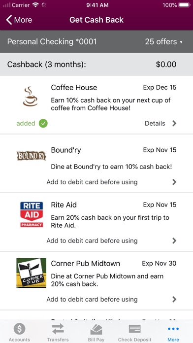 Earn cash back when you use your debit card to purchase select offers. Simply load cash back offers directly to your card from your mobile device or Online Banking.