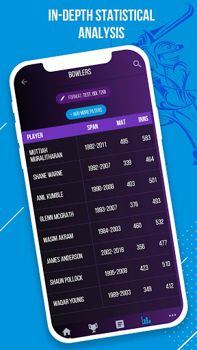 • Worm graphs, run rate graphs and interactive ranking graphs to compare team performances