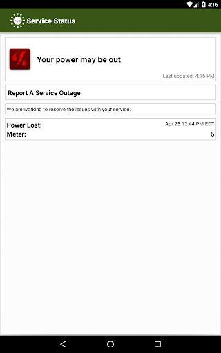 Displays service interruption and outage information. You can also report an outage directly to your service provider.