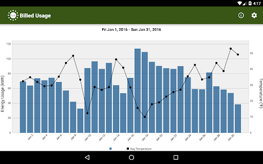 View energy usage graphs to identify high usage trends. Navigate graphs quickly using an intuitive gesture based interface.