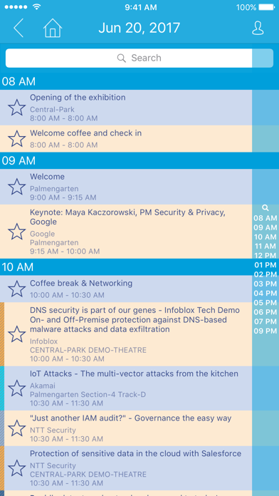 Event app with helpful event information and interactions: how to reach the location, floor- and room plans, program, personal agenda, speakers, exhibitors, push messages with event highlights, online questionnaires, event photos, social media and many more.