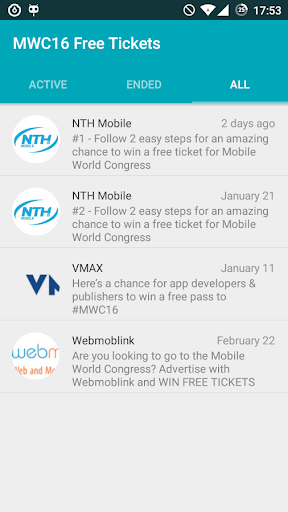 This app allows you to find contests and try your luck (or your perseverance) in order to attend the most important event in the Mobile industry for free.