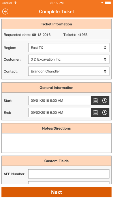 - Create and Submit Field Tickets scheduled through Dispatch, or create from a blank Field Ticket.