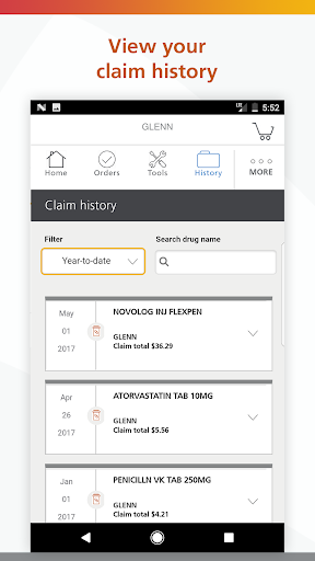 View claims history through the app, whether you use our home delivery pharmacy or a retail pharmacy. Simply go into Claims History to view up to 12 months of prescriptions, how much you’ve spent on medication, and how much pharmacy benefit you’ve used.