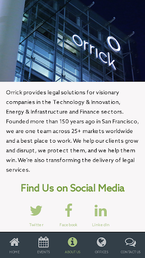 - App Url: https://play.google.com/store/apps/details?id=com.orrick.orrickevents