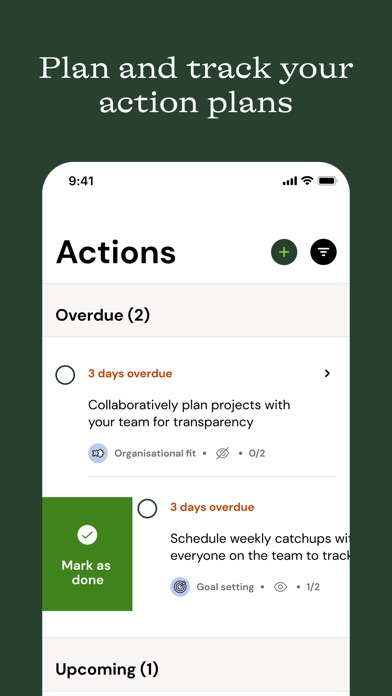 View your survey insights and statistics in your own personal dashboard. Check the team focus areas your manager is working on and related actions in progress.