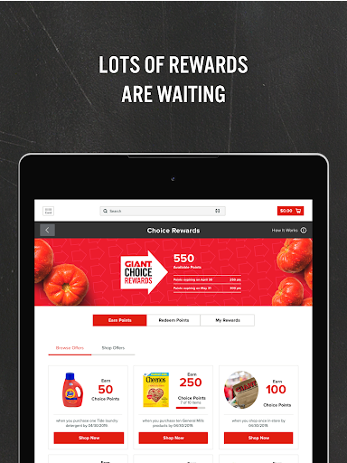 • Earn 1 GIANT Choice Rewards point for every $1 spent online or in store.