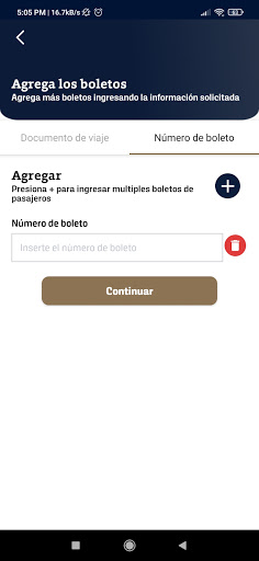 - Ingresa el documento de viaje y nacionalidad para cargar el boleto electrónico.