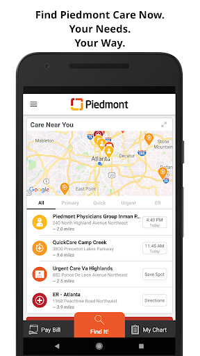 The Piedmont Now app provides instant support to navigate the entire Piedmont experience. From finding Piedmont providers and scheduling your appointments, to guided indoor hospital navigation, the Piedmont Now app makes your healthcare experience easier than ever. Key features include:
