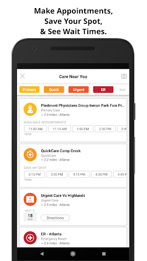• Save your spot in line at any of our QuickCare or Urgent Care locations