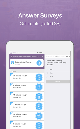 SB Answer enables you to earn points called "SB" for answering surveys and for giving your feedback on local shopping visits. Over 18 million members have already redeemed their SB for over $150 million in free gift cards!