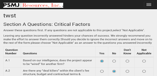 This app assists engineering and architectural firms decide on which proposals to pursue and which to pass. It also identifies key items of information that need to be gathered in order to submit a winning proposal.