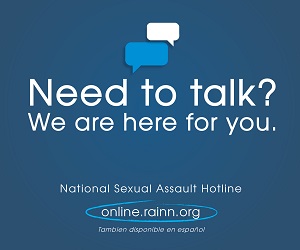 RAINN created and operates the National Sexual Assault Hotline, which has helped more than 2.5 million survivors of sexual violence since 1994. The hotline is available by phone (800.656.HOPE) and online chat (online.rainn.org) in English and Spanish (rainn.org/es). The service is free, confidential, and available 24/7.