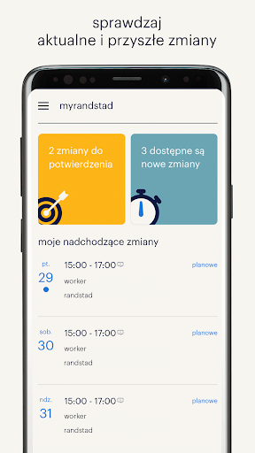 Aplikacja my randstad zapewnia dostęp do najważniejszych informacji związanych z Twoją pracą oraz ułatwia kontakt z konsultantem Randstad Polska. My randstad to szybki i wygodny podgląd Twojego aktualnego grafiku pracy - zawsze i wszędzie. W prosty sposób dodawaj swoje preferencje dostępności czasu pracy oraz zapisuj się na dodatkowe zlecenia.