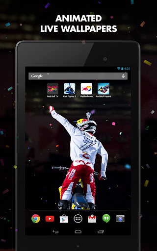 Android 4.0+ for static and live wallpapers, Android 5.0+ for Red Bull Watch Faces. Red Bull Wallpapers is optimized for Google Nexus devices with perfect high-resolution Nexus Wallpapers and for use with GO Launcher EX on Samsung Galaxy devices for exceptional Galaxy Wallpapers.