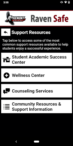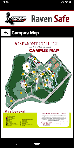 Raven Safe is the official safety app of Rosemont College. It is the only app that integrates with Rosemont College's safety and security systems. Public Safety has worked to develop a unique app that provides students, faculty and staff with added safety on the Rosemont College campus. The app will send you important safety alerts and provide instant access to campus safety resources.