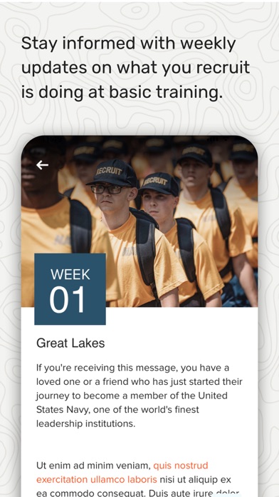 Stay up to date on your recruit as they progress through basic training. Learn about what they are going through on a weekly basis, all accessible within the Sandboxx app.