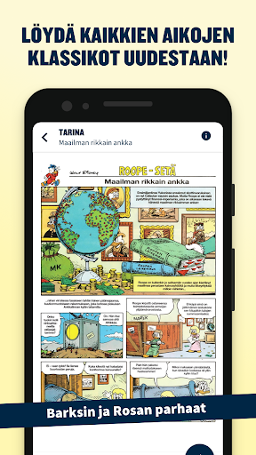 Aku Ankka digipalvelu tukee myös Android-puhelimia! Sovellus toimii laitteissa, joissa on vähintään 4-tuumainen näyttö ja käyttöjärjestelmänä Android 4.2 tai uudempi.