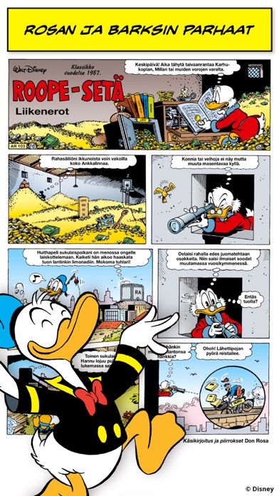 Lisäksi hakutoiminto auttaa monenlaisissa kinkkisissä kysymyksissä, kuten missä sarjiksessa sanottiinkaan "Elämme kovia aikoja, ystävä hyvä"? Aku Ankka digipalvelussa riittää tutkittavaa vaativallekin ankistille, ja kokoelma täydentyy joka viikko. Sukelluslasit silmille ja nokka edellä sarjismereen!
