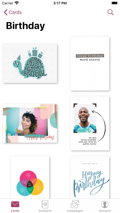 You can manage your contacts and groups easily with the app - search, view, and edit your contacts and add reminders to help you send your cards and gifts on time.