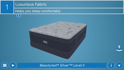 - Use the menu button on the bottom-left side of the screen to open the mattress selector, where users can select a different model