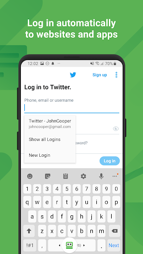 • Automatically fill in passwords in apps and sites visited using Chrome or other browsers.