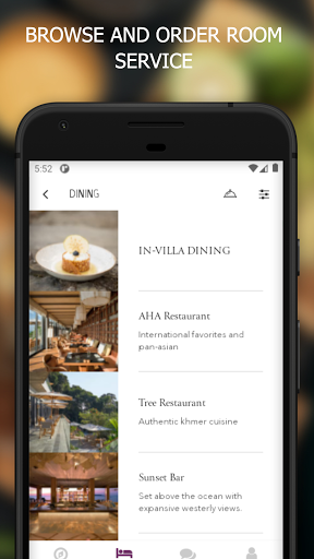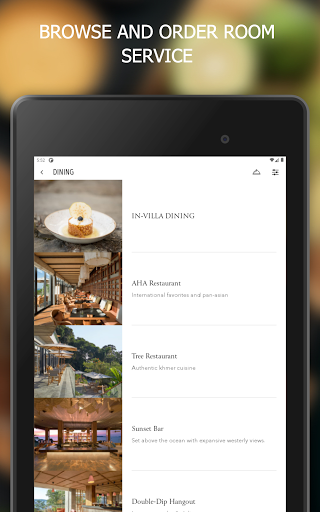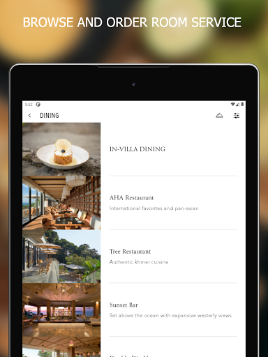 - Browse through restaurant menus, book that amazing table with a view or order an in-room meal with everything you need to create a perfect night in