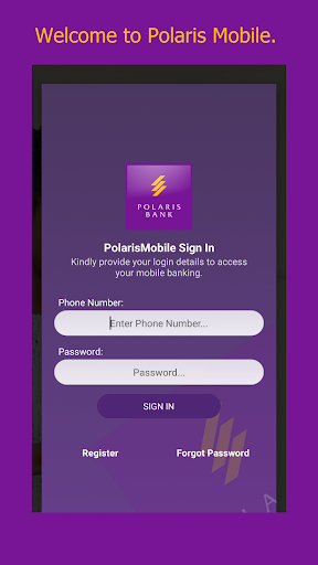 As an existing user, Simply sign in to PolarisMobile with your Polaris bank registered phone number and existing password.