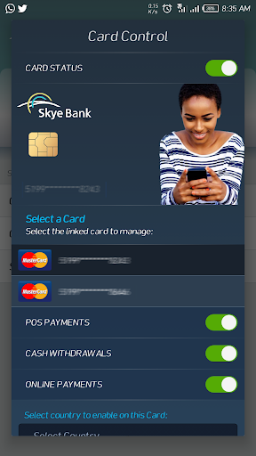 Debit Card Control for enabling and disabling (control usage of your card on different payment channels).