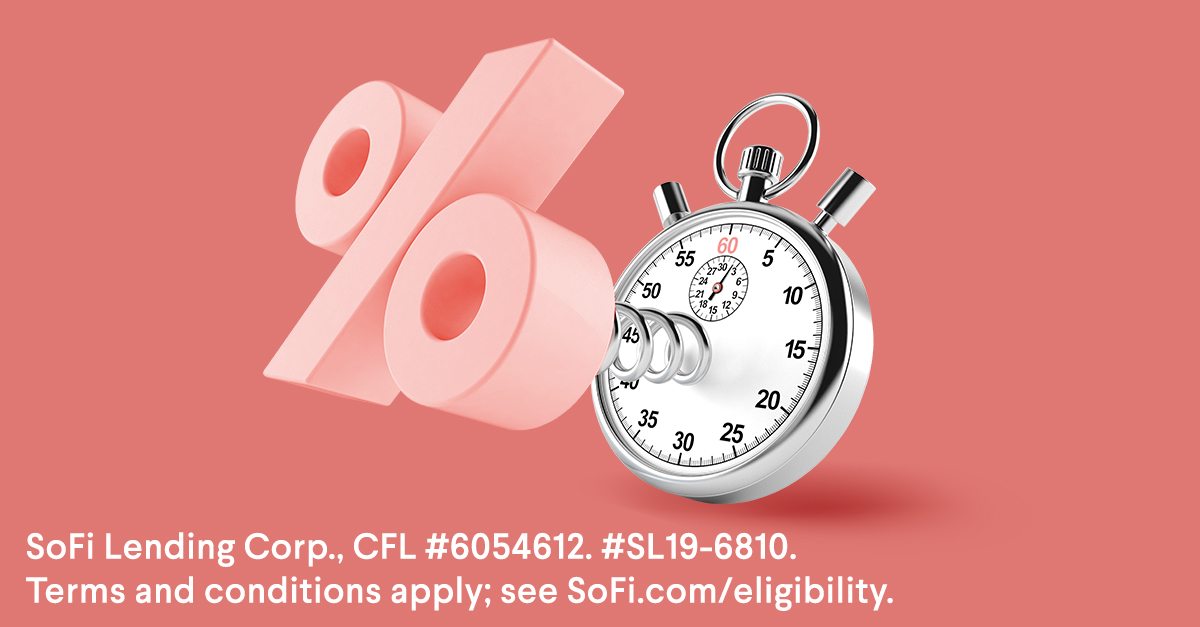 SoFi loans are originated by SoFi Lending Corp. or an affiliate not all products are available in all states. Additional terms, conditions, and state restrictions apply; See www.sofi.com/eligibility for details. Licensed by the DPFI, CFL#6054612. NMLS#1121636 (nmlsconsumeraccess.org)